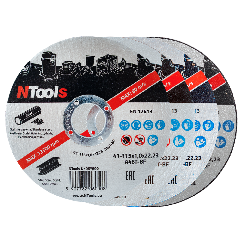 Dischi da taglio per acciaio inox, disponibili in diametri da 115mm e 125mm, spessori da 1,0 mm, 1,2mm e 1,6mm. Forma piatta FEPA 41, privi di ferro, zolfo e cloro. Ideali per il taglio di elementi in acciaio inox con smerigliatrici.