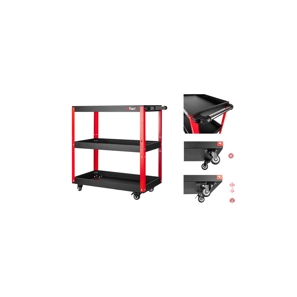 È un carrello da officina funzionale e solido, progettato per un utilizzo intensivo in officine, centri di assistenza