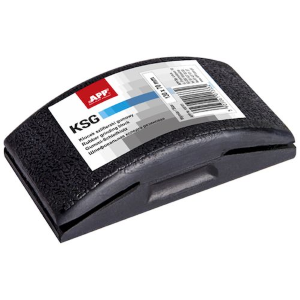 Blocco in gomma elastica con carta abrasiva fissata tramite speciali morsetti. Utilizzato per levigatura sia a secco che con acqua. La sua flessibilità permette di adattarsi facilmente ai contorni dell'oggetto lavorato, rendendolo utile in diverse applicazioni di lavorazione dei materiali.