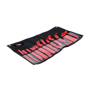 Set di 12 strumenti in nylon specializzati per la rimozione di rivestimenti, clip e guarnizioni nei veicoli. Gli utensili, grazie alla loro forma profilata, permettono di rimuovere rapidamente i rivestimenti interni di qualsiasi veicolo. Estremamente resistenti.