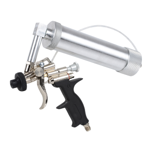 Pistola per applicazione di materiali sifillanti spray in cartucce da 310ml, con regolazione della quantità di materiale per creare diverse strutture superficiali.
