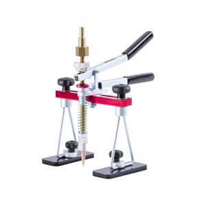 Un estrattore per riparazioni spot è un dispositivo universale per l'estrazione di piccole ammaccature. Ha una gamma molto ampia di regolazioni sia per i supporti che per il perno di estrazione. Grazie a questo, può funzionare su quasi tutte le superfici. Stringendo la maniglia dell'estrattore il perno si sposta verso l'alto. L'altezza di aspirazione può essere regolata in modo molto preciso. L'Estrattore è dotato di un elettrodo puntiforme per la rimozione delle ammaccature, di un adattatore per collegare l'Estrattore ad uno spotter/saldatore e di una maniglia che consente di estrarre le ammaccature con un metodo non invasivo utilizzando funghi incollati allo strato di vernice. Materiale: acciaio e alluminio verniciato.
