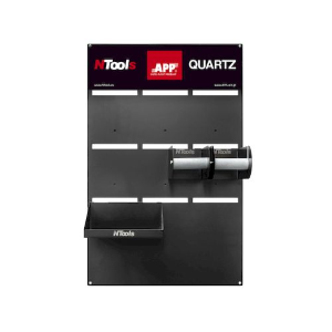 Supporto progettato per la conservazione di abrasivi. Il set comprende una tavola,due dispencer per l'erogazione di carta abrasiva in rotoli e una mensola per lo stoccaggio d diversi tipi di abrasivi.